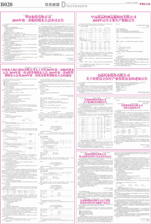 中国光大银行股份有限公司关于召开2019年第一次临时股东大会、2019年第一次A股类别股东大会、2019年第一次H股类别股东大会及2019年第一次优先股类别股东大会的通知