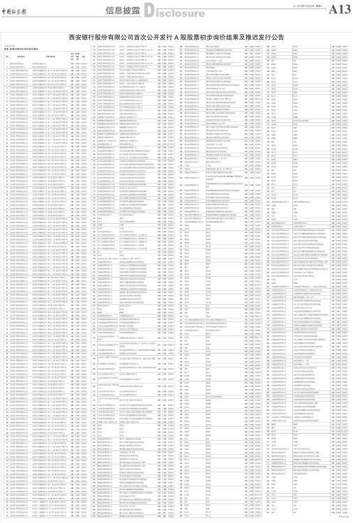 西安银行股份有限公司首次公开发行A股股票初步询价结果及推迟发行公告