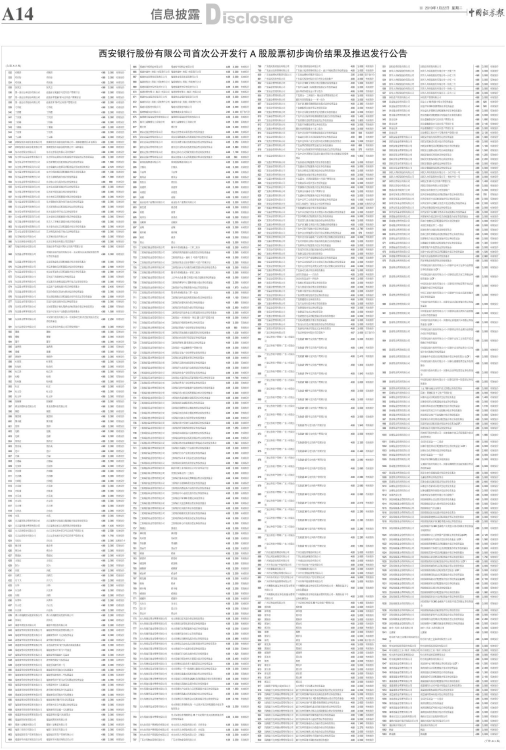 西安银行股份有限公司首次公开发行A股股票初步询价结果及推迟发行公告