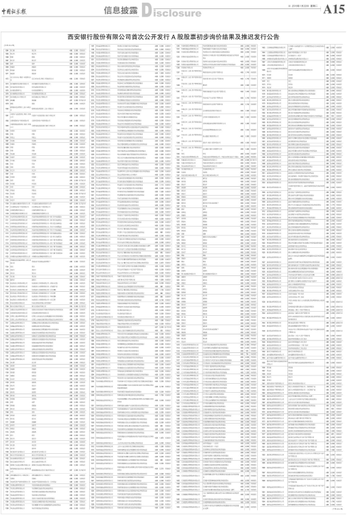 西安银行股份有限公司首次公开发行A股股票初步询价结果及推迟发行公告