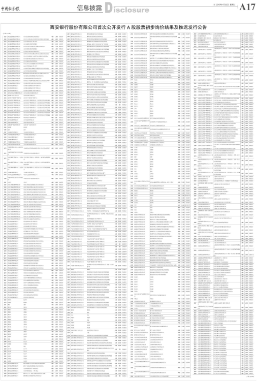西安银行股份有限公司首次公开发行A股股票初步询价结果及推迟发行公告