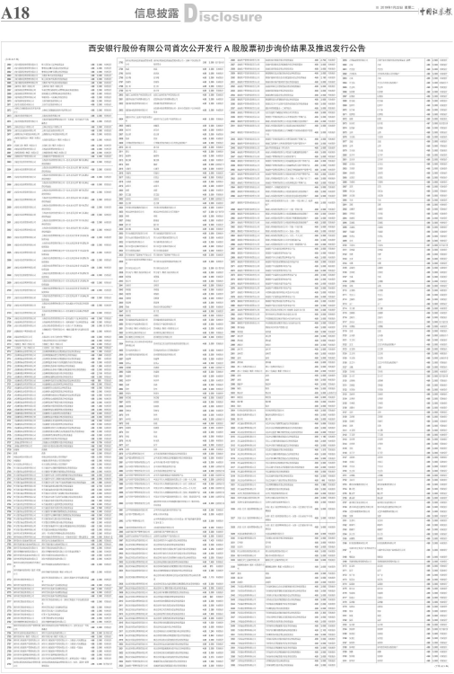 西安银行股份有限公司首次公开发行A股股票初步询价结果及推迟发行公告