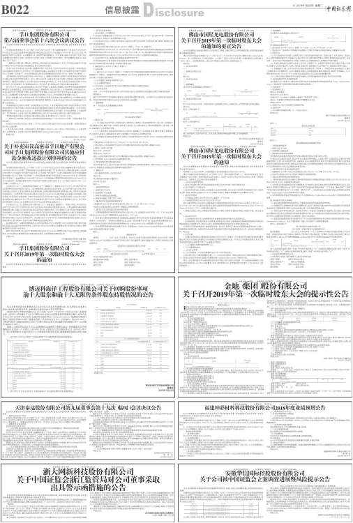 关于召开2019年第一次临时股东大会的通知的更正公告