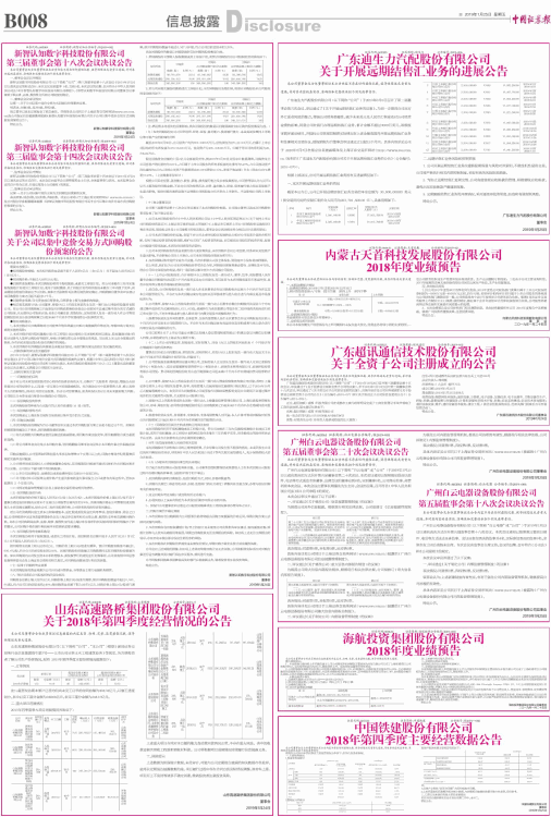 关于2018年第四季度经营情况的公告