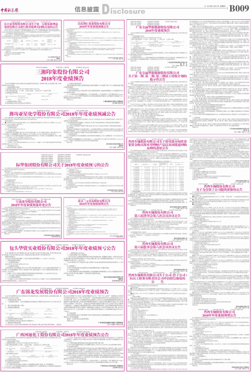 潍坊亚星化学股份有限公司2018年年度业绩预减公告