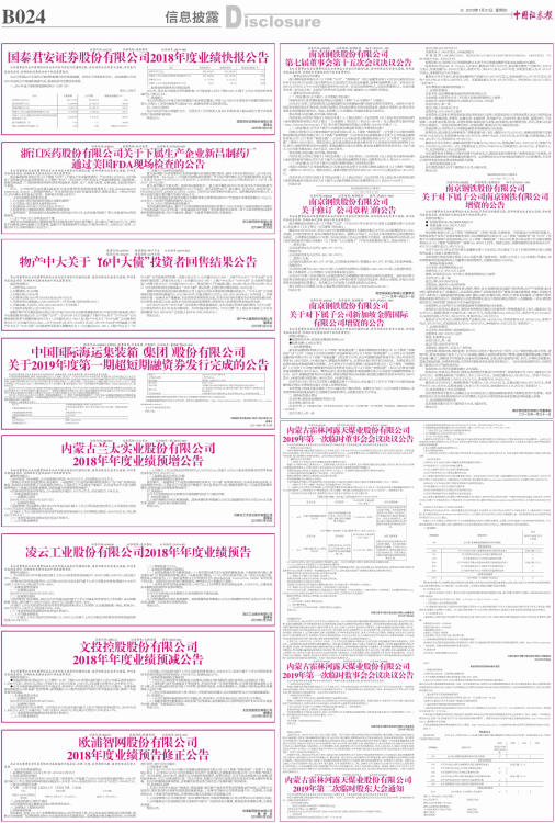 国泰君安证券股份有限公司2018年度业绩快报公告