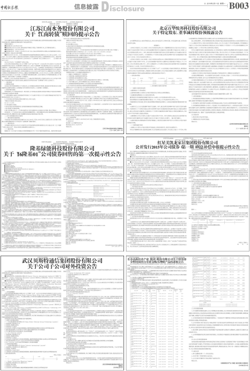 公开发行2015年公司债券(第一期)利息补偿申报提示性公告