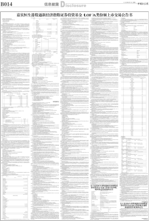 嘉实恒生港股通新经济指数证券投资基金(LOF)A类份额上市交易公告书