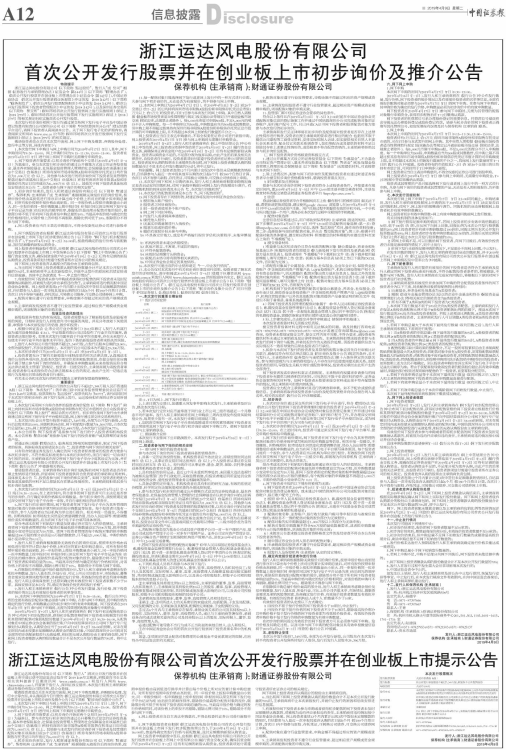 浙江运达风电股份有限公司首次公开发行股票并在创业板上市提示公告