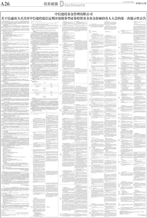 关于以通讯方式召开中信建投稳信定期开放债券型证券投资基金基金份额持有人大会的第一次提示性公告