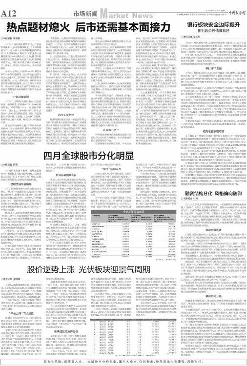 四月全球股市分化明显
