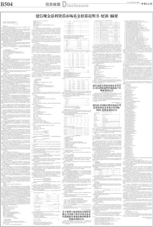 建信现金添利货币市场基金招募说明书(更新)摘要