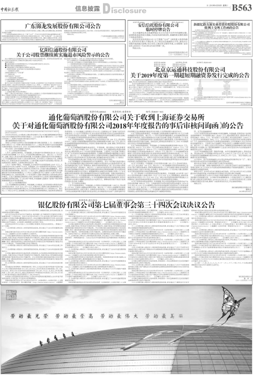 《关于对通化葡萄酒股份有限公司2018年年度报告的事后审核问询函》的公告