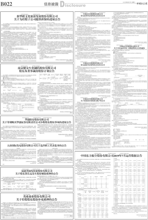 中国东方航空股份有限公司2019年7月运营数据公告