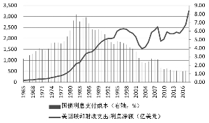财政赤字扩大导致美国国债发行增加。截至2018年底,美国未偿国债总额为21.5万亿美元,较上年底增长6.3%。同时,由于融资成本上升,2018年,美国联邦财政支出中的净利息支出达到3250亿美元,较上年增长了23.8%;该项支出分别相当于联邦财政支出的7.7%和联邦财政收入的9.8%,均为2008年以来的最高水平;该项支出相当于GDP的1.6%,也为2008年以来的最高水平。2018年,美国国债的利息支付成本约为1.56%,较2015年的低点高出了25%。