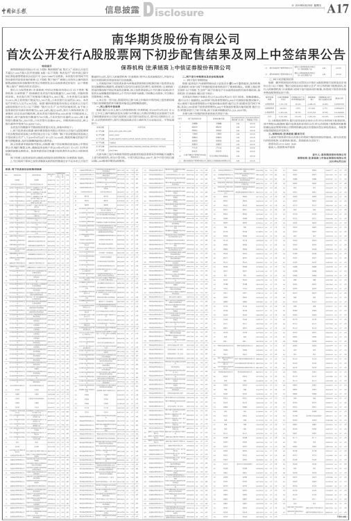 首次公开发行A股股票网下初步配售结果及网上中签结果公告