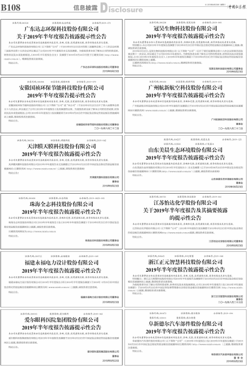 2019年半年度报告披露提示性公告