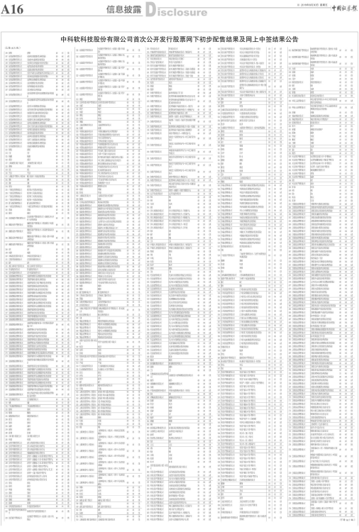 中科软科技股份有限公司首次公开发行股票网下初步配售结果及网上中签结果公告