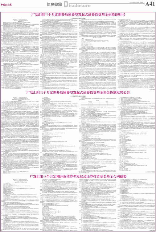 广发汇阳三个月定期开放债券型发起式证券投资基金基金份额发售公告