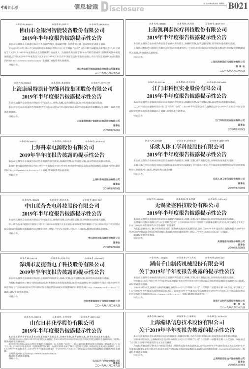 2019年半年度报告披露提示性公告