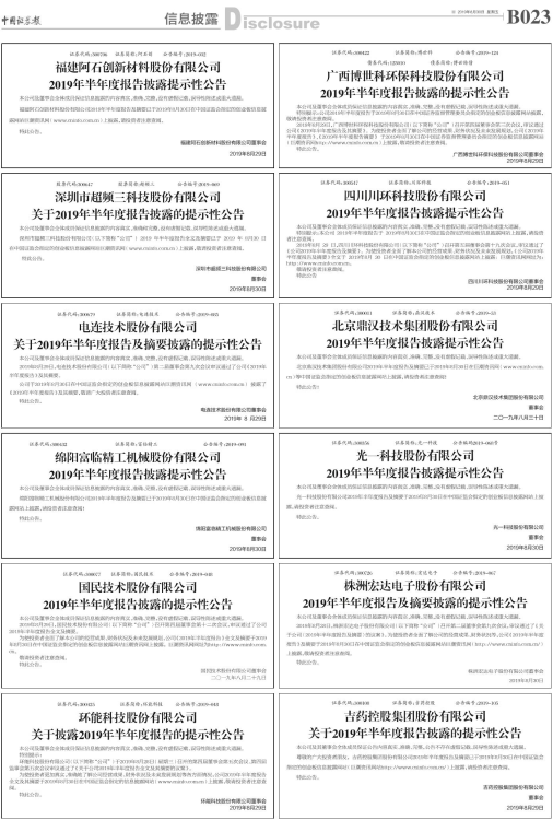 2019年半年度报告披露提示性公告