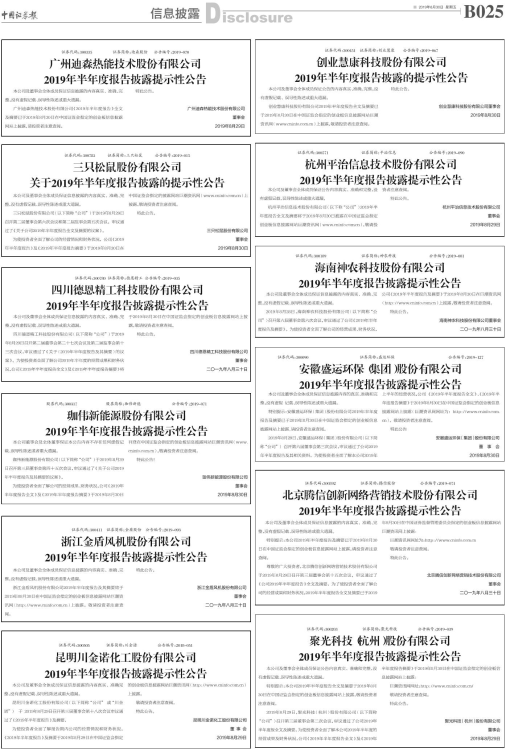 2019年半年度报告披露提示性公告