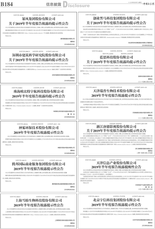 2019年半年度报告披露提示性公告