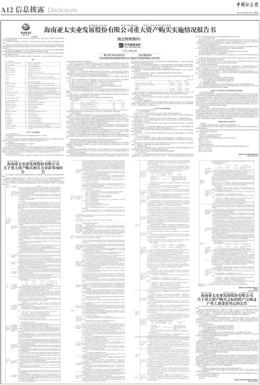 海南亚太实业发展股份有限公司重大资产购买实施情况报告书