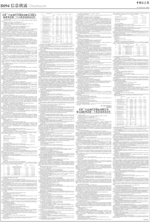 天津一汽夏利汽车股份有限公司第七届董事会第二十八次会议决议公告