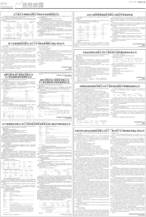 辽宁成大生物股份有限公司2021年度业绩快报公告