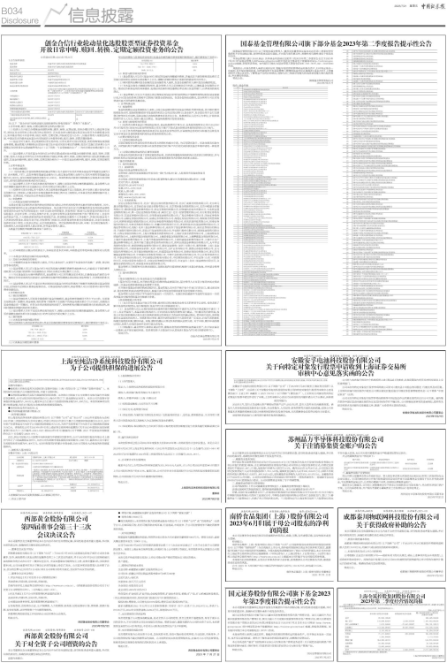 国元证券股份有限公司旗下基金2023年第2季度报告提示性公告