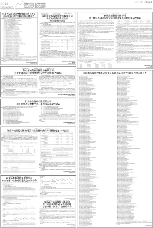 旗下部分基金2023年第二季度报告提示性公告