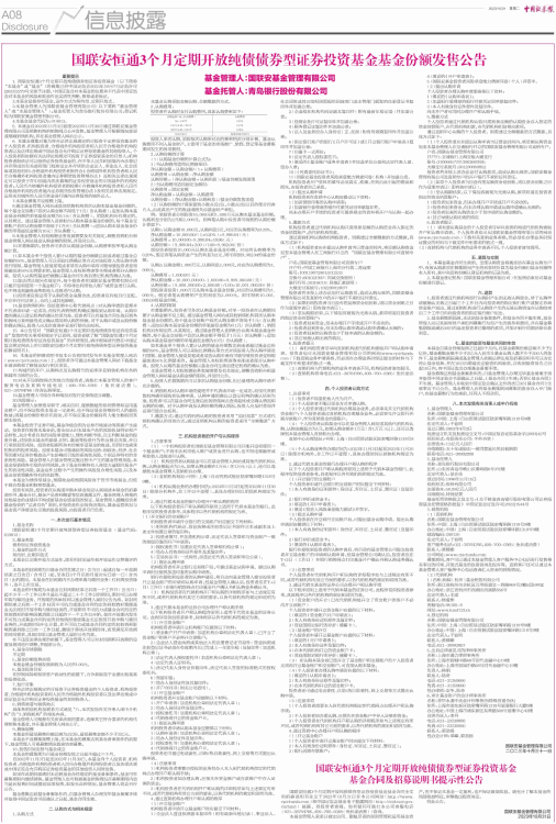 国联安恒通3个月定期开放纯债债券型证券投资基金基金份额发售公告