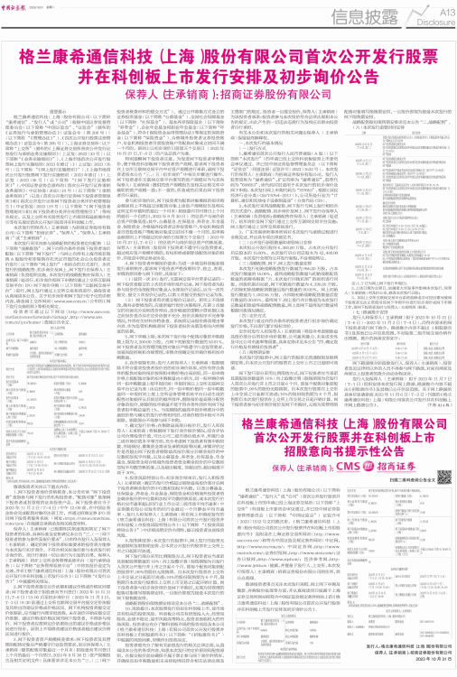 格兰康希通信科技(上海)股份有限公司首次公开发行股票