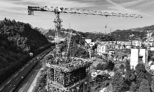 这是11月17日在四川省达州市境内拍摄的西渝高铁槟郎特大桥连续梁施工现场(无人机照片)。