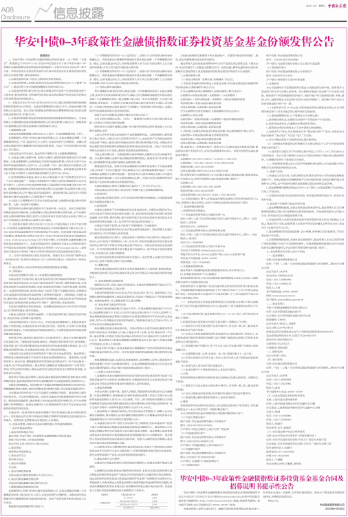 华安中债0-3年政策性金融债指数证券投资基金基金合同及招募说明书提示性公告
