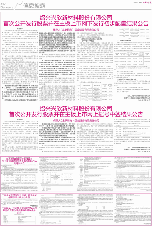 首次公开发行股票并在主板上市网上摇号中签结果公告