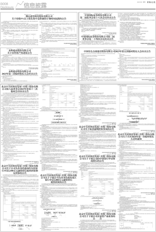 北京中关村科技发展(控股)股份有限公司第八届董事会2023年度第十三次临时会议决议公告