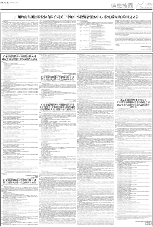 广州岭南集团控股股份有限公司关于中证中小投资者服务中心《股东质询函》的回复公告