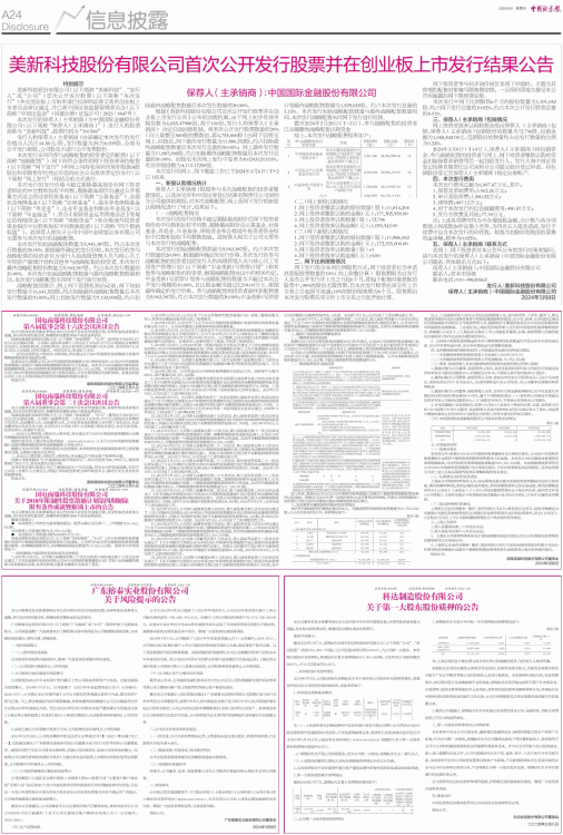 美新科技股份有限公司首次公开发行股票并在创业板上市发行结果公告