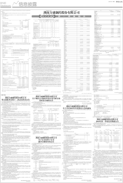 湖南方盛制药股份有限公司