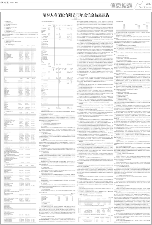 瑞泰人寿保险有限公司年度信息披露报告