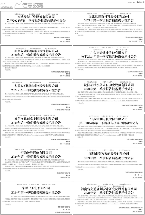 2024年第一季度报告披露提示性公告