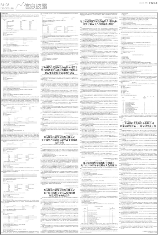 万方城镇投资发展股份有限公司关于哈尔滨铸鼎工大新材料科技有限公司