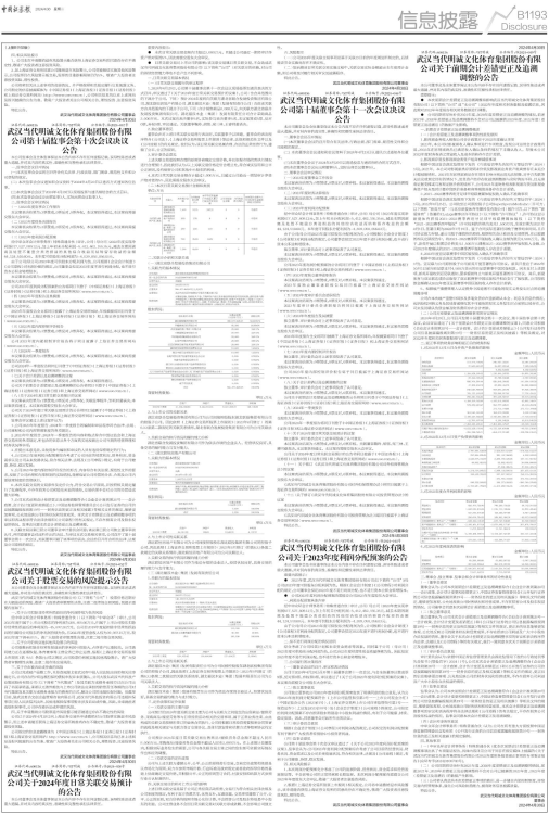 武汉当代明诚文化体育集团股份有限公司关于2023年度利润分配预案的公告