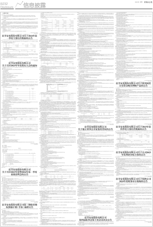 拉芳家化股份有限公司关于2024年第一季度主要经营数据的公告