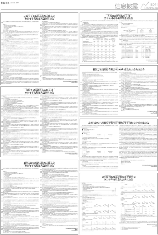 浙江万里扬股份有限公司2023年度股东大会决议公告