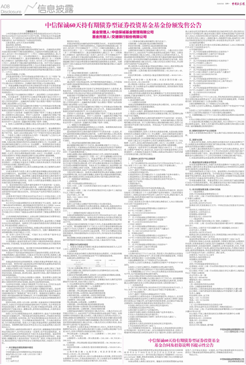 中信保诚60天持有期债券型证券投资基金基金份额发售公告