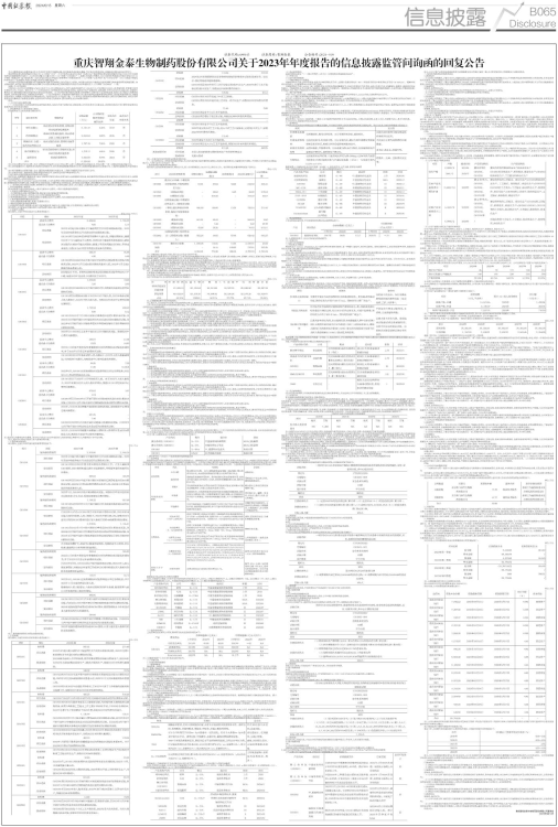 重庆智翔金泰生物制药股份有限公司关于2023年年度报告的信息披露监管问询函的回复公告