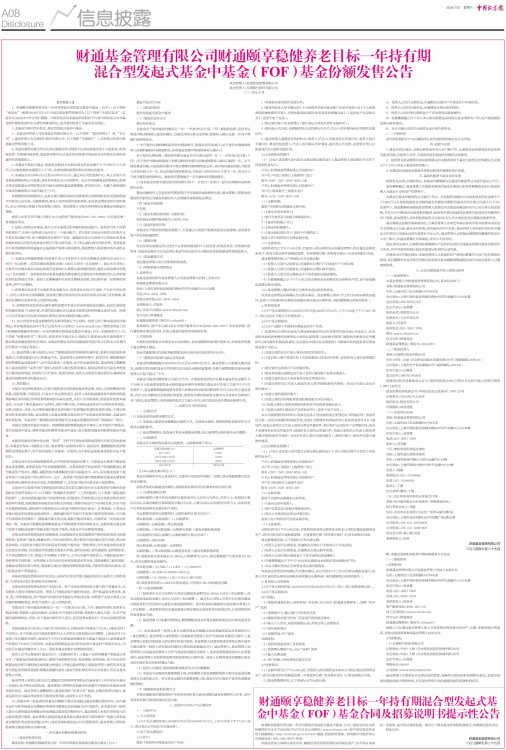 财通颐享稳健养老目标一年持有期混合型发起式基金中基金(FOF)基金合同及招募说明书提示性公告